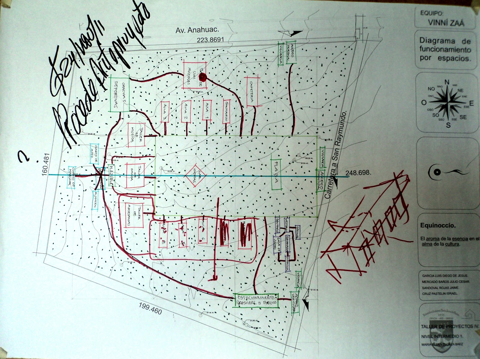 nuestra traza es del este - oeste, por es la ubicación del sol y de la cual al terreno le sacamos sección áurea, en donde obtuvimos un rectángulo,el cual no tenia que rebasar el limite de nuestro terreno y por tal motivo volvimos a trazar otro rectángulo áureo, al trazar ya los cuatro puntos obtuvimos un cuadrado el cual sus vértices, obtuvimos lo que fue el centro del cuadrado del cual volvimos a trazar mas vértices, y en donde se juntaban los puntos obtuvimos los edificios como nuestro elemento regente que es el laboratorio de idiomas que esta en el centro de la gran plaza de acuerdo a la sección áurea.